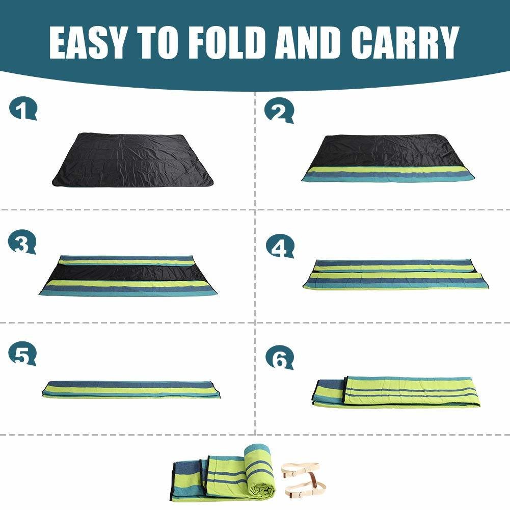 [Large size,Portable & Lightweight] Unfolded blanket is 78" X 57" inches. It easily folds to a compact tote 12"L x 4"W x 4"H inches. Ideal for your next picnic, beach adventure, backyard party, camping, backpacking, or simply to have a clean and comfortable mat for your toddler to play on