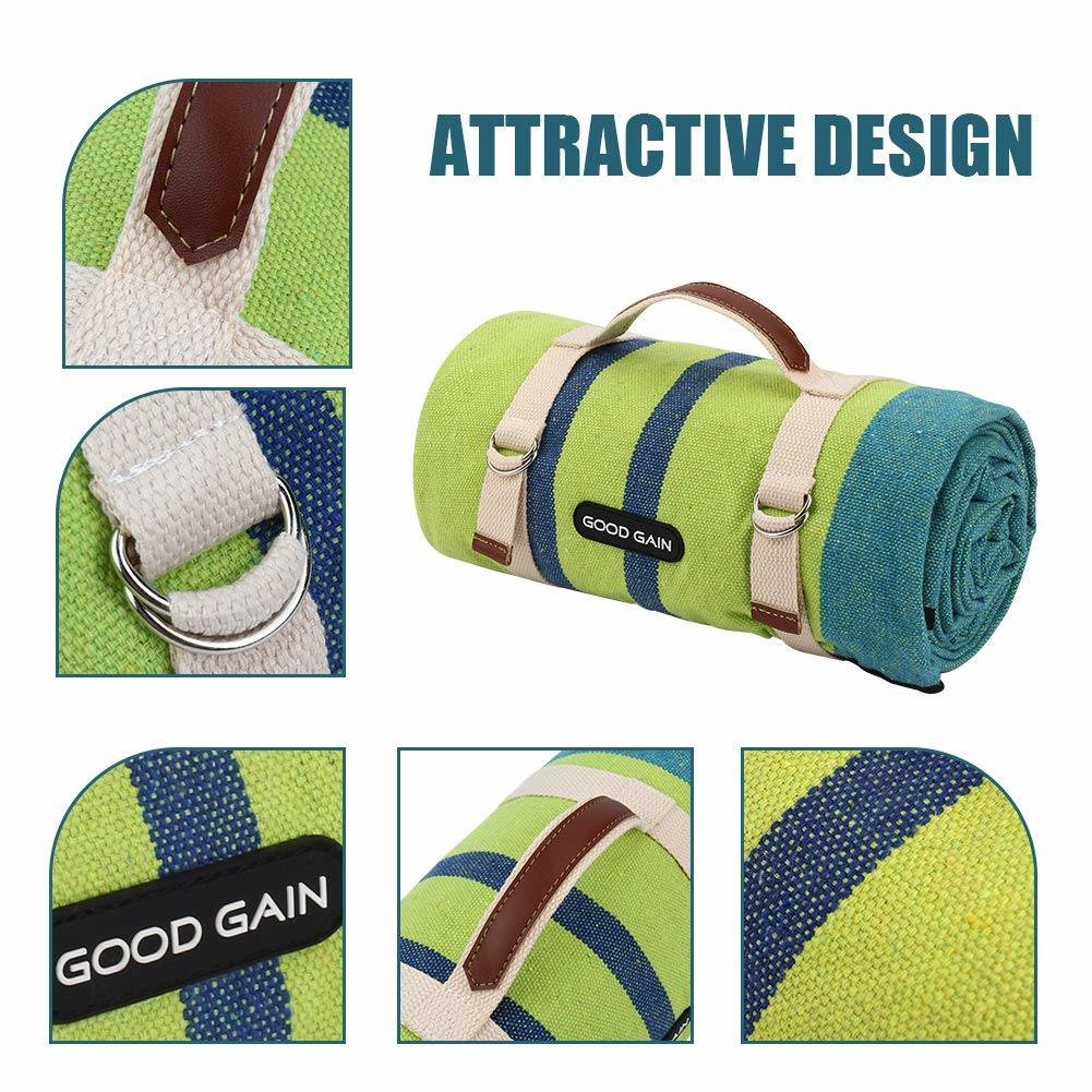 [Waterproof&Sandproof Blanket]Prevents picnic rug from getting wet on damp lawns or surfaces; provides extra sitting comfort, perfect for family outdoor activities.Sand proof G GOOD GAIN Canvas picnic blanket has become an essential choice for every family travel.